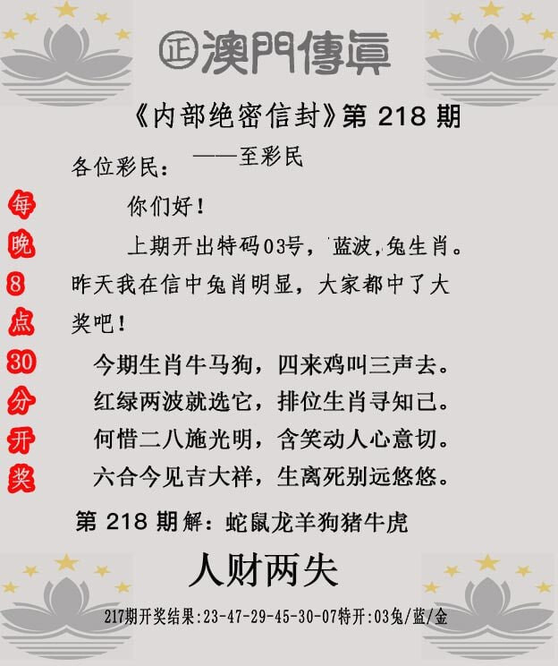 正澳门六合彩【218期】正版澳门福利传真