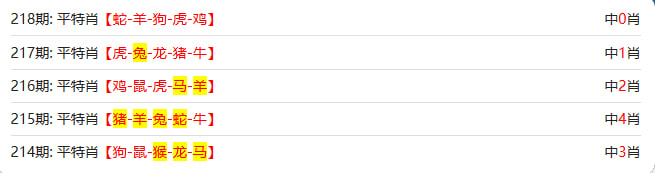 新澳门六合彩的【218期】平特五肖